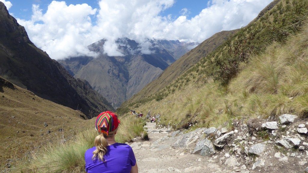 Get reasonably fit. Do strength training for a few weeks before hand to condition legs. Walking on flat ground for a half hour every evening after work will not give you the legs for a hike upward. Nor will housekeeping or gardening. Some of the back packers I passed were only in their twenties, young people travelling around South America but while they had youth and strength on their side many of them were only reasonably conditioned to walk upwards for hours at a time and some struggled. On the third day I noticed one of the young Argentinian girls lying in a sleeping bag outside the dining tent at one of the camps. Altitude possibly.