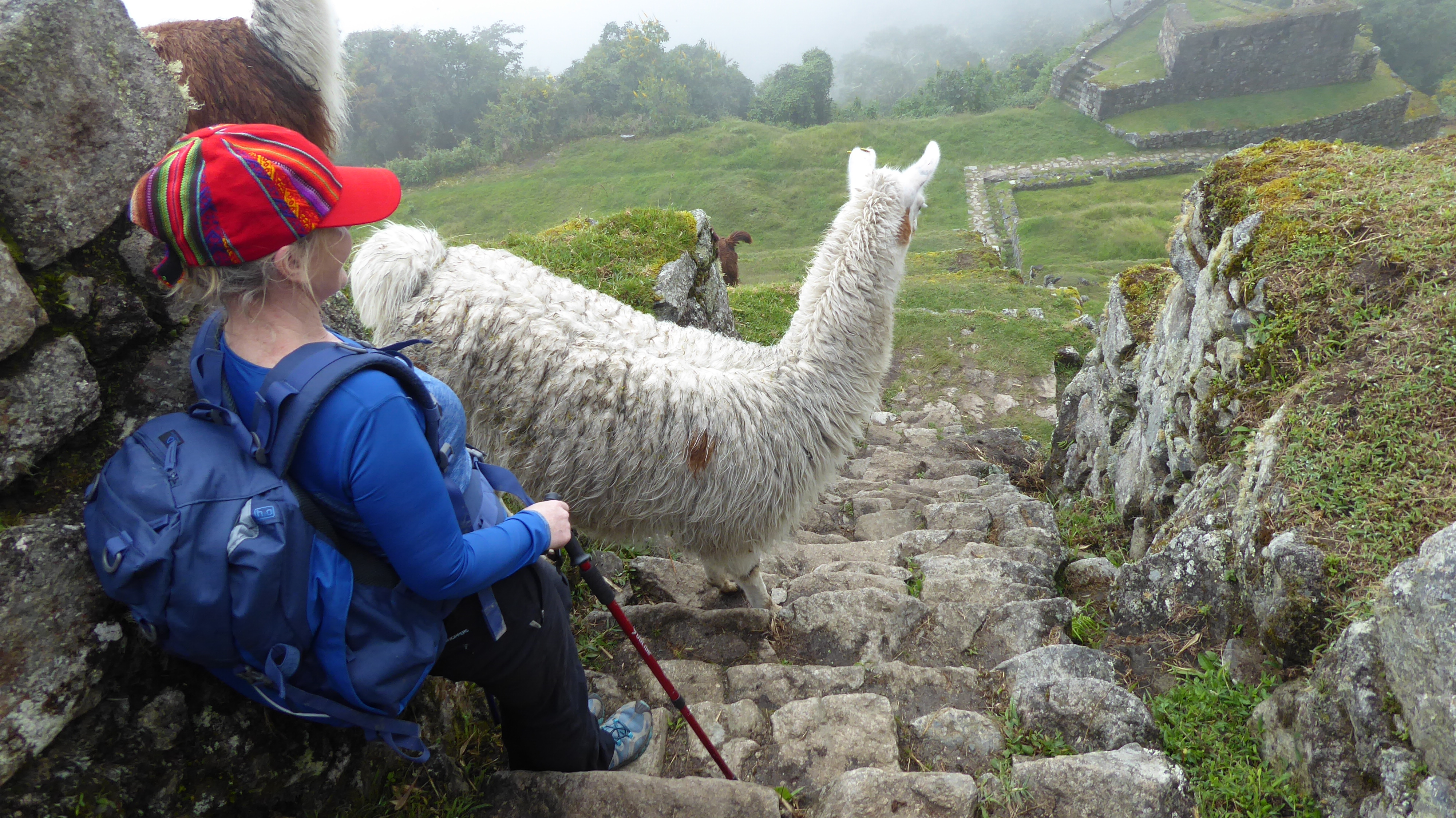 Once again a couple of Llama were the cause of a diversion when a large animal that had been grazing amongst the ruins, decided to descend the stone steps behind me. Darren called out a warning as this beast of a thing started to canter down the steps at a good clip and I managed to step out of the way before I was wiped out. These animals are as harmless as sheep but getting hit by one at speed would be like being knocked down by a Mini. I’d never live it down. Tourist mowed down by Llama recovering in hospital with 37 broken bones…..